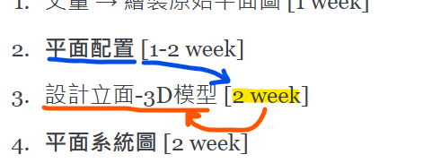 Ex 舉例來說:平面配置「定案」→ 2周後,會完成設計立面模型;