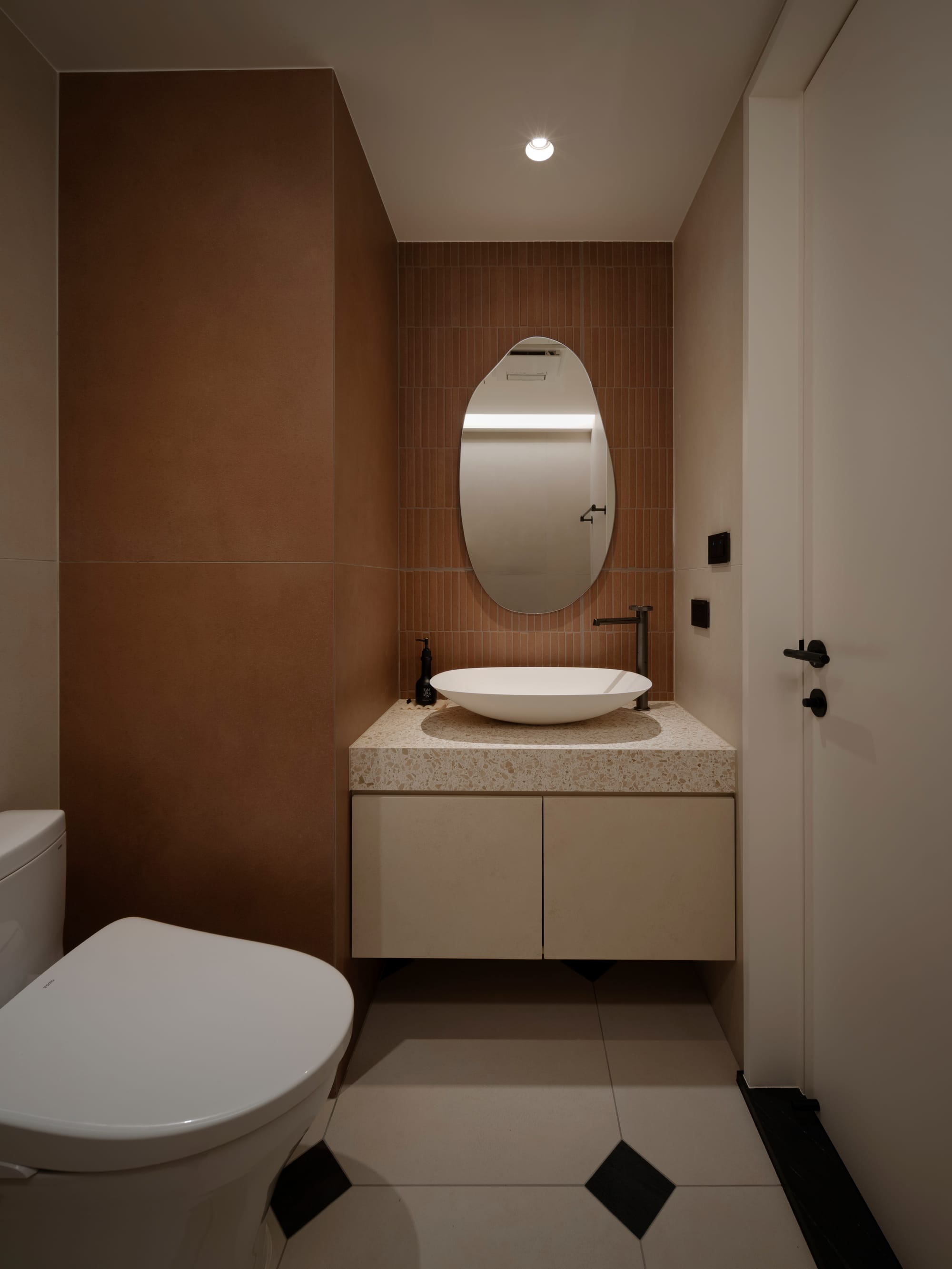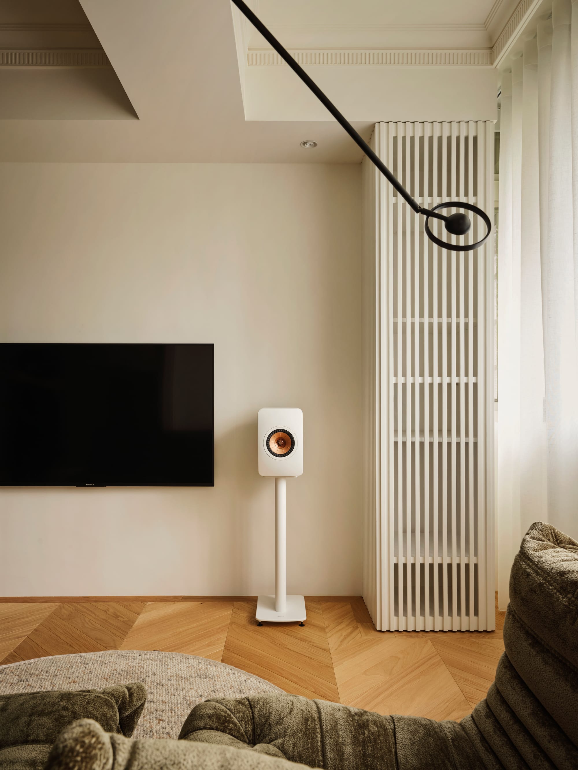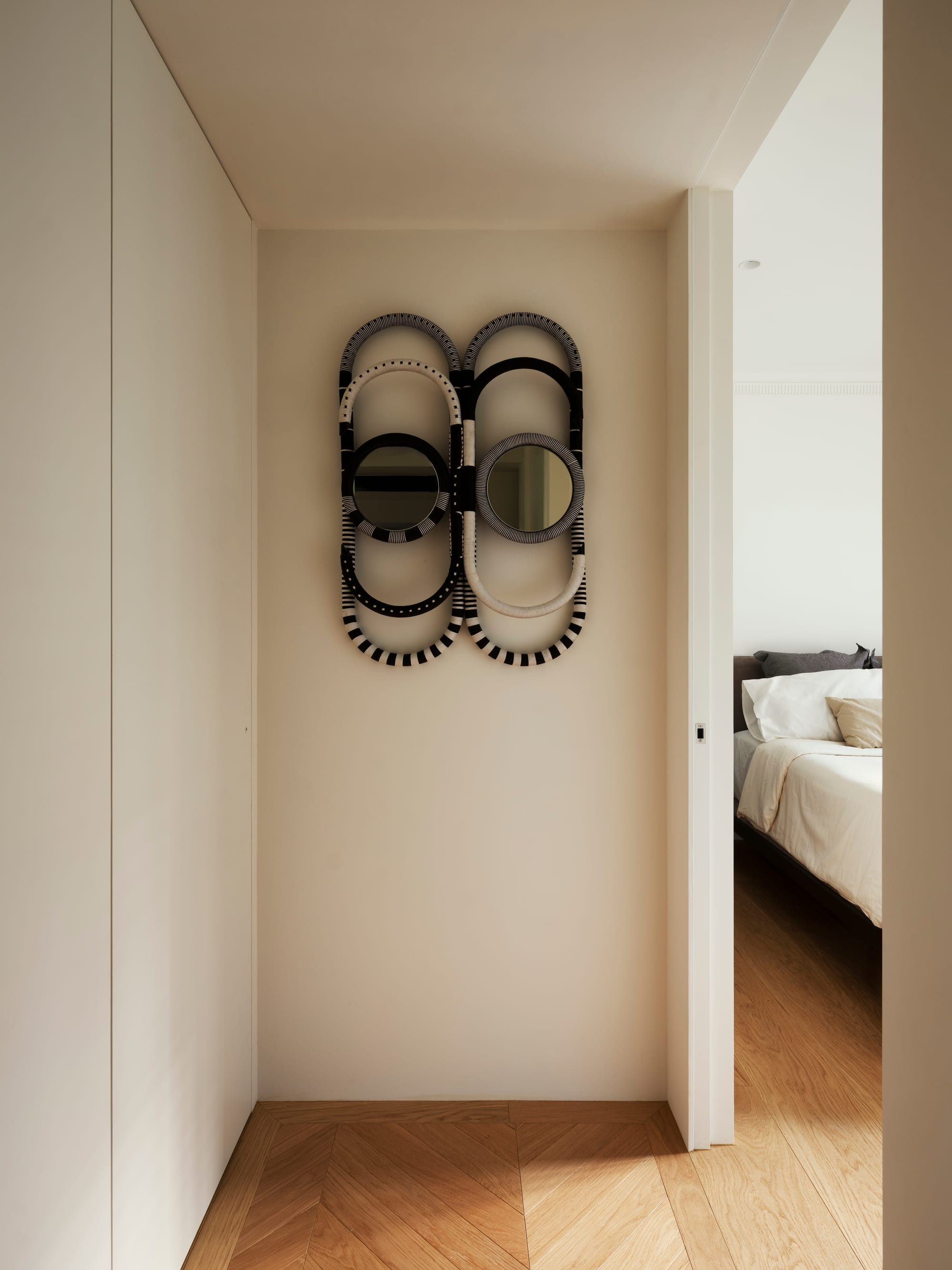 本案以緊湊的都市住宅為背景,思考如何在有限尺度中創造平靜而連續的生活體驗。並未單純追求空間的開放,而是透過一樘「型構的拱門」,讓光線、動線與日常行為在不同區域之間自然運行,構築出有節奏的空間關係。