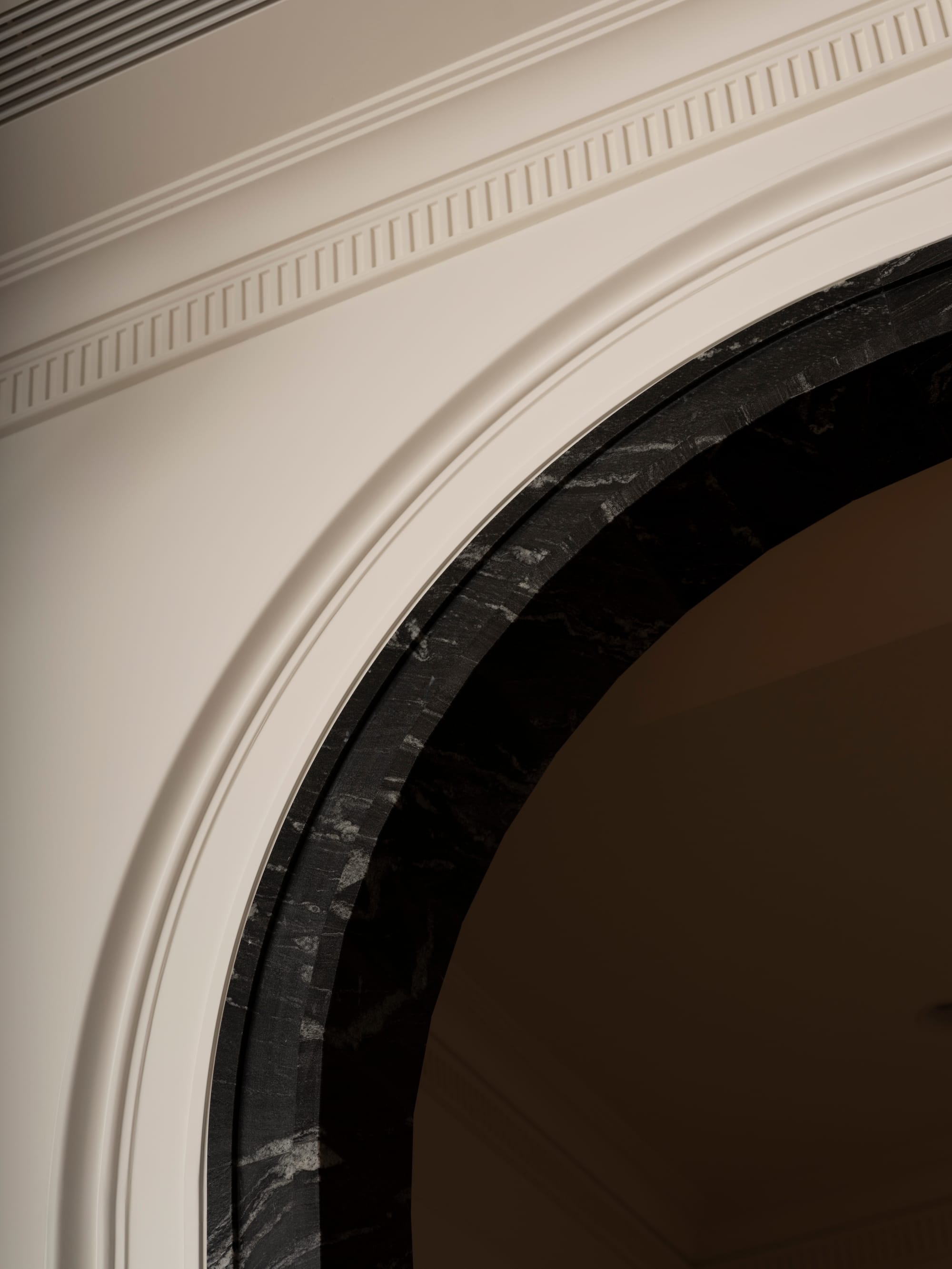 大理石拱形門成為整體空間的骨架,組織動線、界定功能,同時維持視線與採光的通透性。每一構件皆經 CNC圖形精密切割,以乾式組裝與手工調整,使結構邊界轉化為可被感知的建築元素,在場域的界定與開放之間取得平衡。